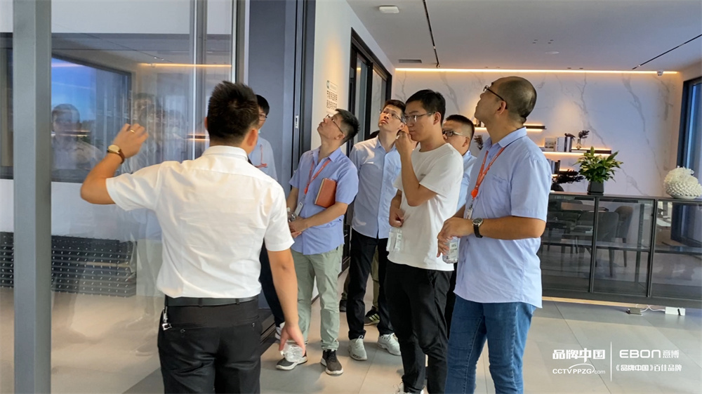意博门窗招商总监金众师长教师率领欧派手艺中间十余人手艺职员观赏3000m²数智展厅,场景化、数字化、智能化、休会化让欧派一行赞美有加!